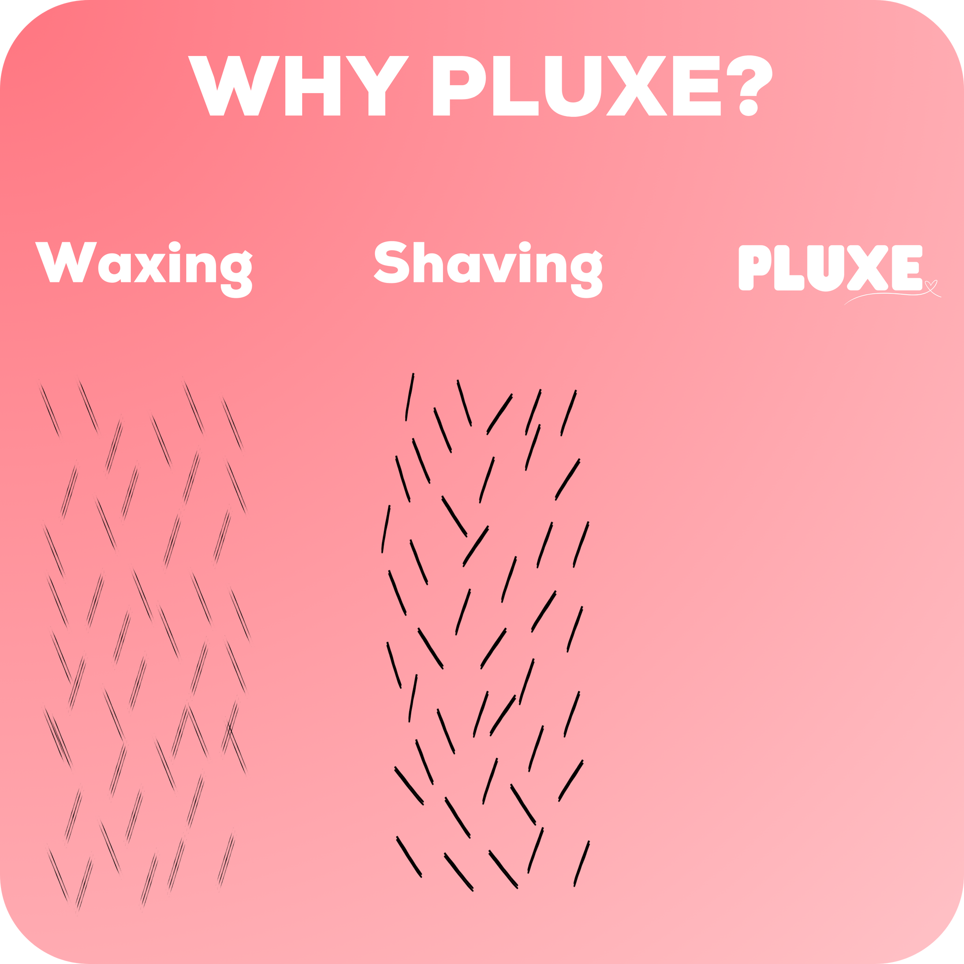 O aparelho possui vários discos mecânicos que se abrem e fecham à medida que o desliza suavemente sobre a pele. Isto permite-lhes adaptar-se à espessura do seu pelo, grosso ou fino, para o puxar desde a raiz - sem tocar na sua pele. A duração da sessão varia consoante o tamanho da área a tratar, podendo ir de segundos a alguns minutos. O Pluxy influencia o ciclo natural de crescimento do cabelo do seu corpo, o que atrasa o crescimento do cabelo, que pode demorar até quatro semanas.